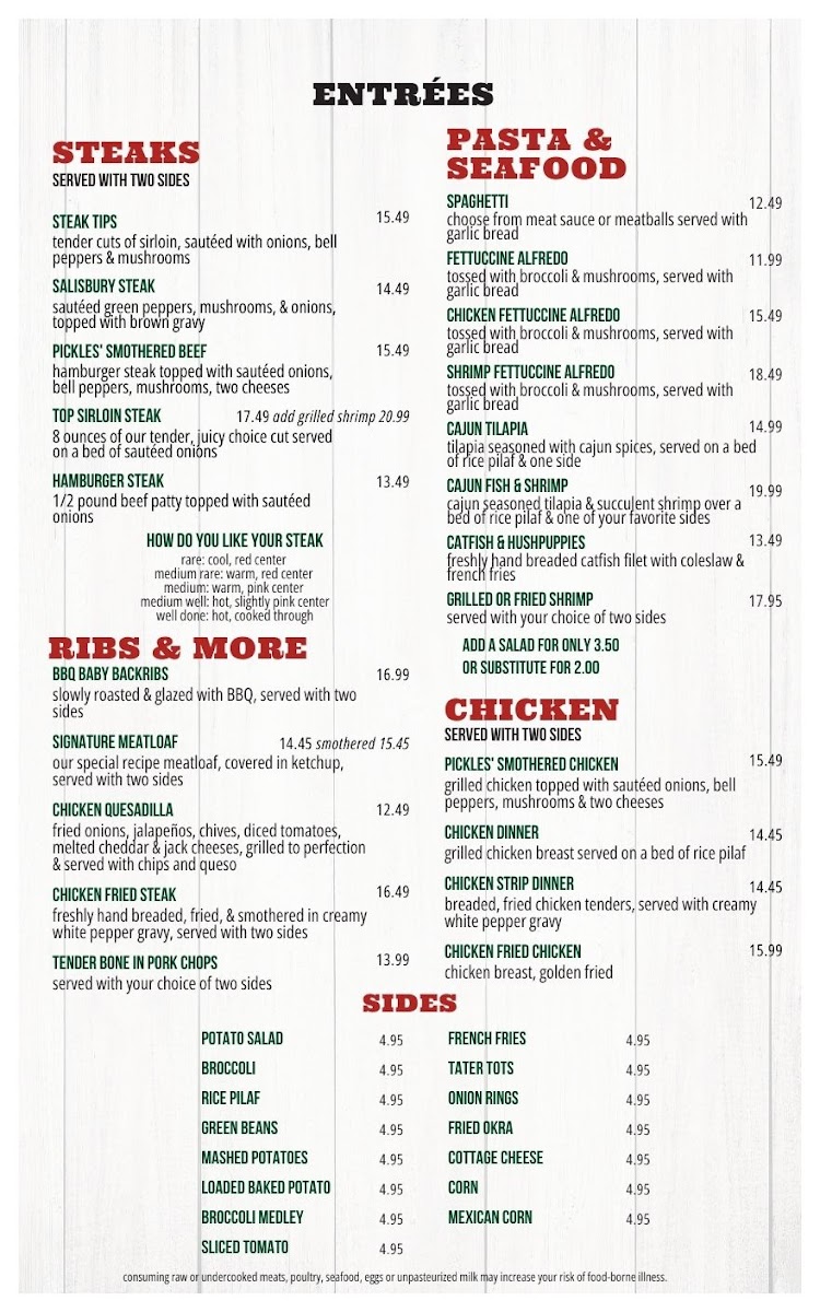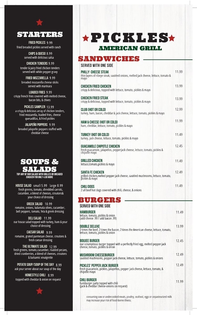 At Pickles: America's Grill, we invite you to indulge in mouthwatering dishes that celebrate the authentic flavors of America! Join us for a memorable dining experience filled with delicious comfort food and warm hospitality. Gather your friends and family, and let us delight your taste buds today!