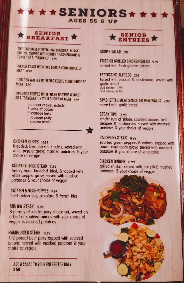 8 ounces of tender, juicy choice cut, served on a bed of sautéed onions with your choice of two sides